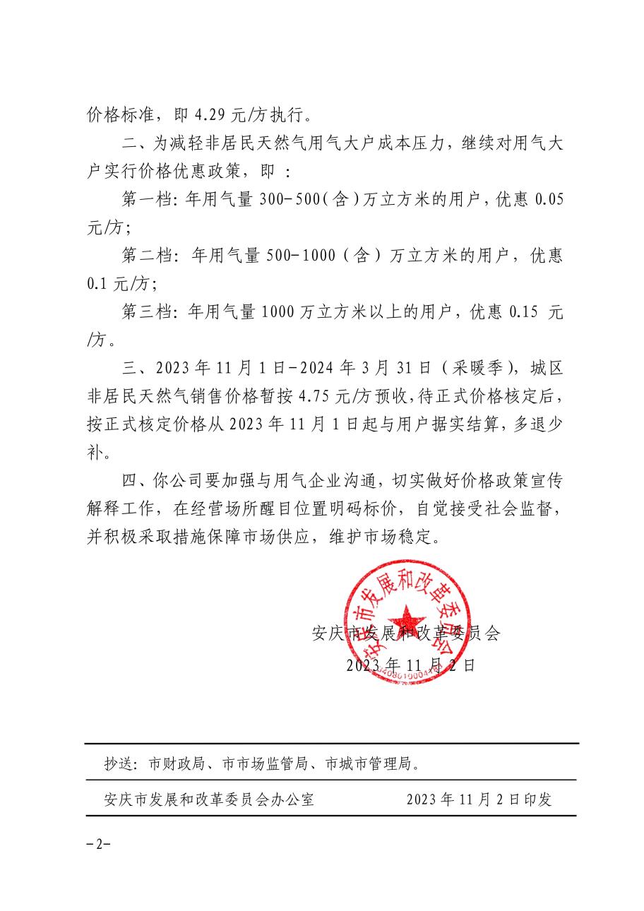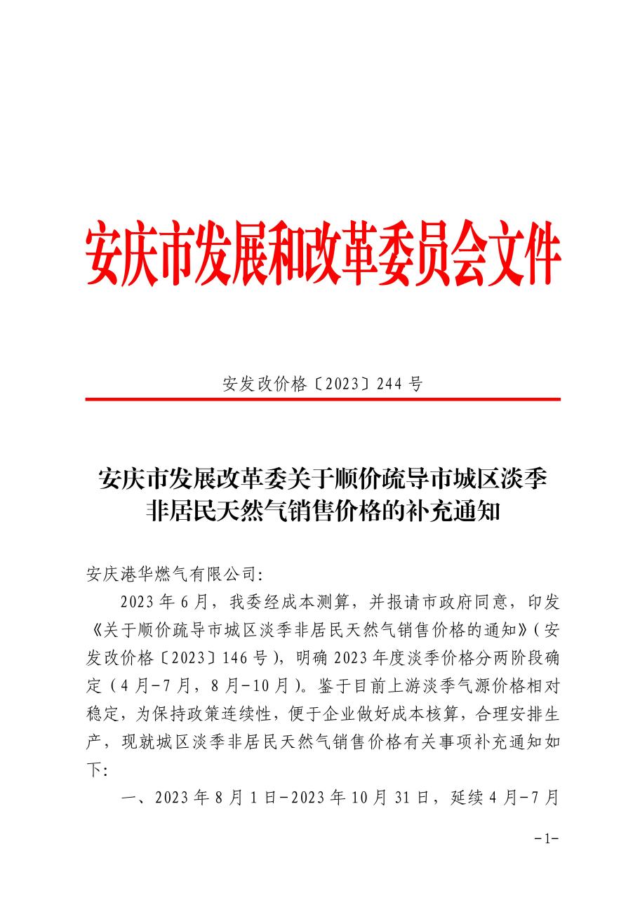 安慶市發(fā)展改革委關(guān)于順價疏導(dǎo)市城區(qū)淡季非居民天然氣銷售價格的補(bǔ)充通知