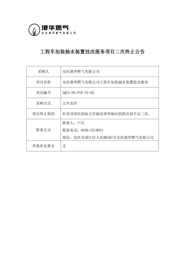 工程車加裝抽水裝置技改服務(wù)項(xiàng)目二次終止公告